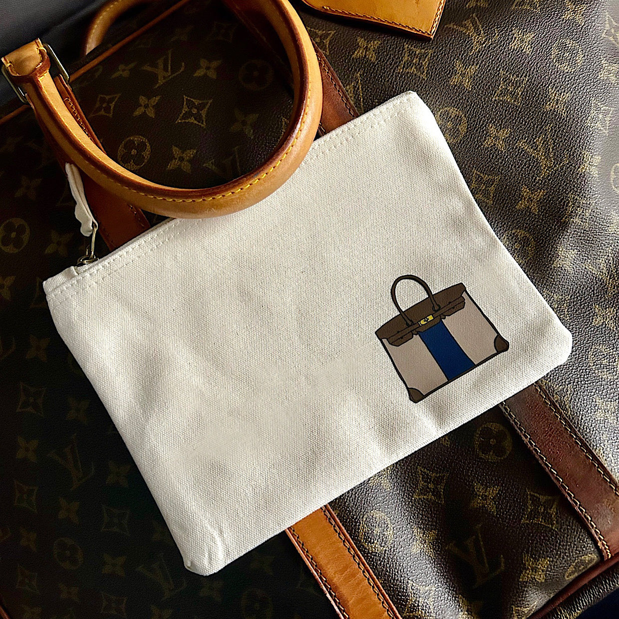 Pochette morbida 100% cotone pesante 400 gr/m². Misure: 22x16x0.5 cm. Colore principale avorio. Chiusura con zip in metallo. Logo stampato frontalmente in Italia. Lavare a mano con acqua fredda, stirare a rovescio. Etichetta con istruzioni di lavaggio all'interno.