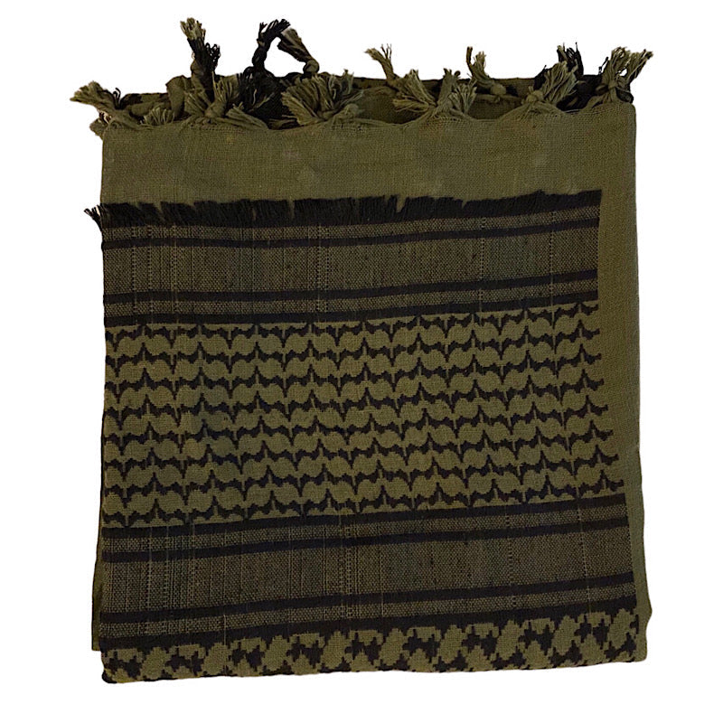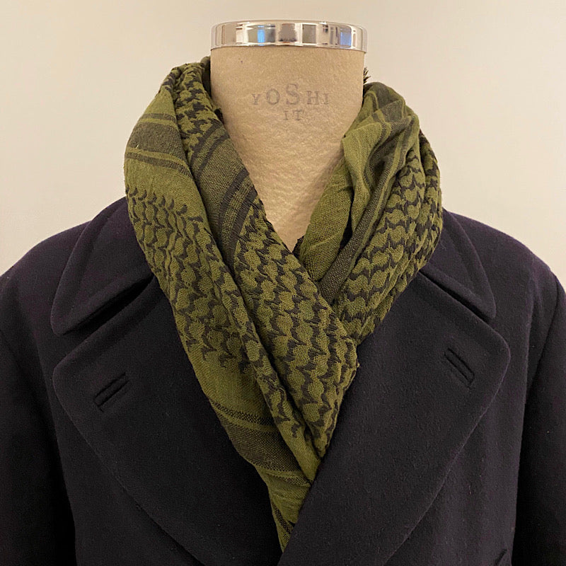 The Yoshi OMAN scarf cotton 100%. Open size 100 x 100 cm. Good for winter and middle season. Color: military green and embroidery black.