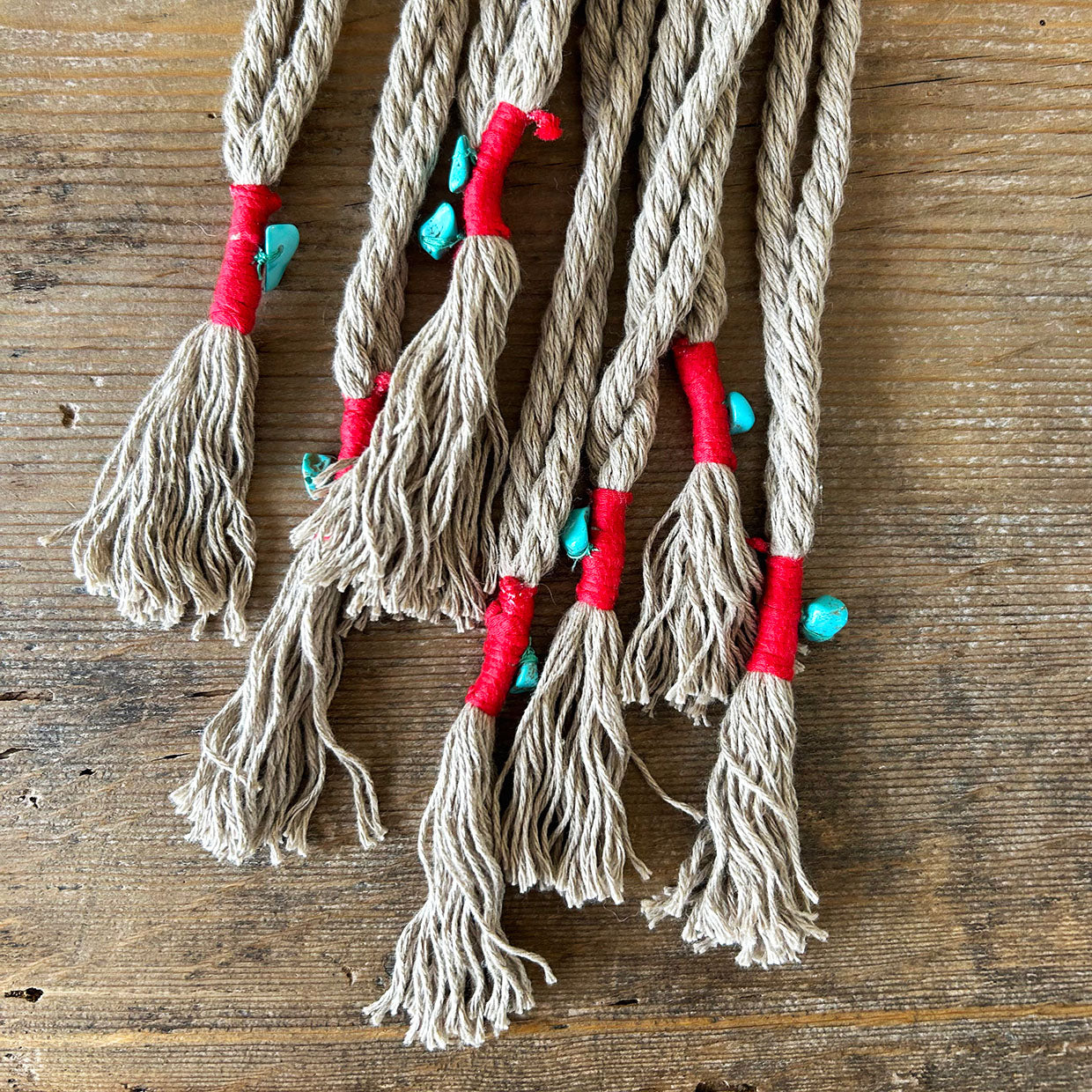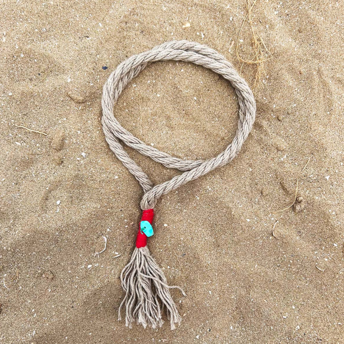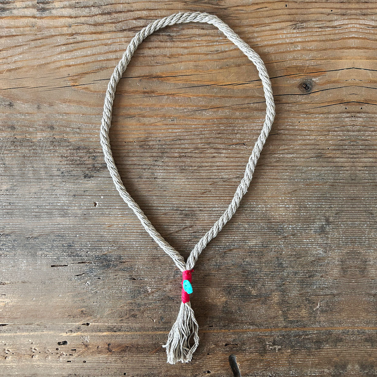 LE SABLE Collana - Completamente fatte a mano in Italia, corda 100% cotone, vera pietra (colore turchese), cucite a mano. Finiture in cotone egiziano bianco. Taglia unica circa 62 cm di circonferenza. Forme e dimensioni delle pietre possono essere differenti tra loro. Pochi esemplari disponibili per volta a causa del tempo di confezionamento.