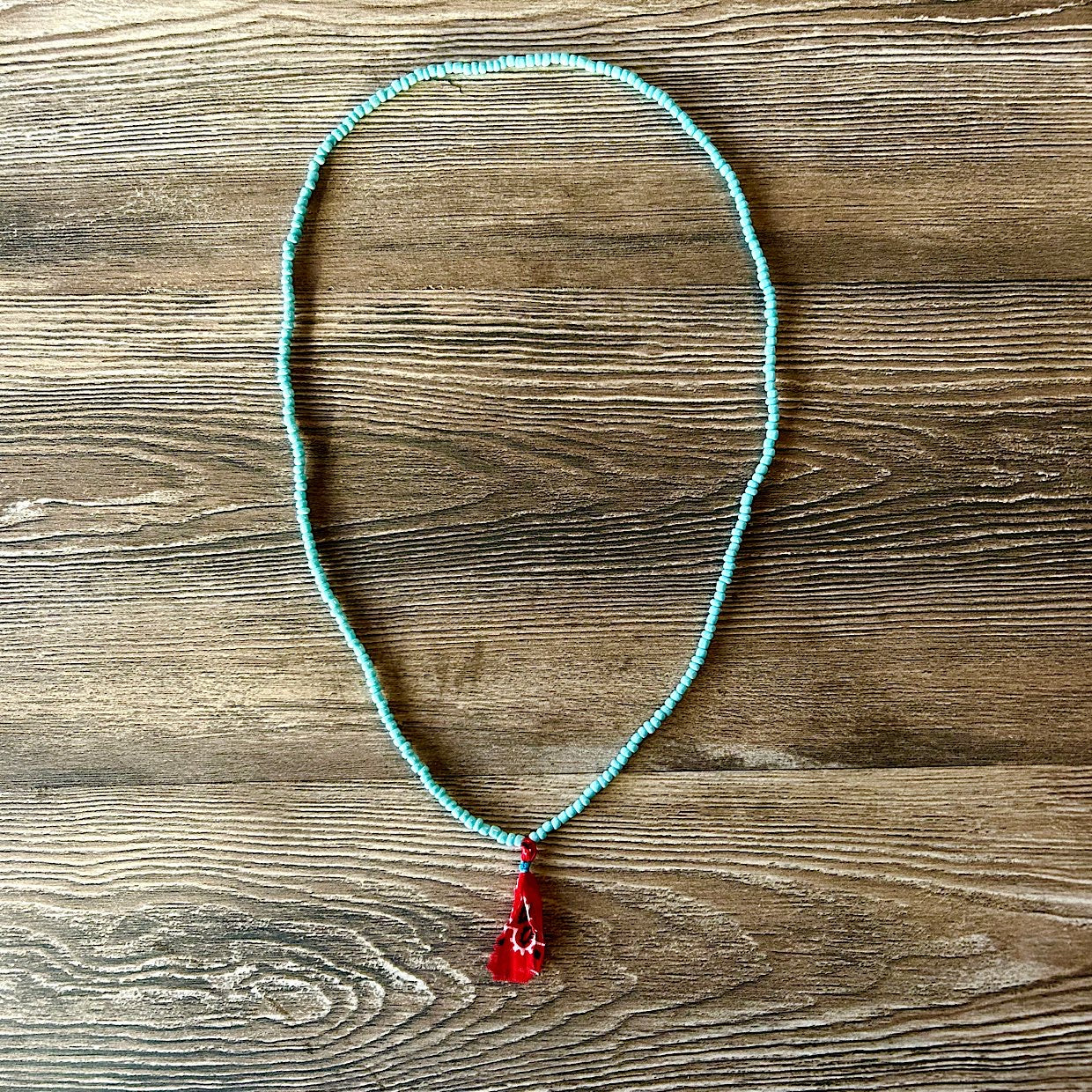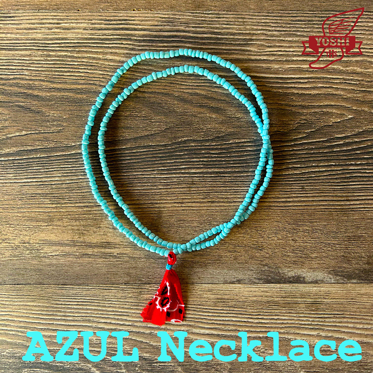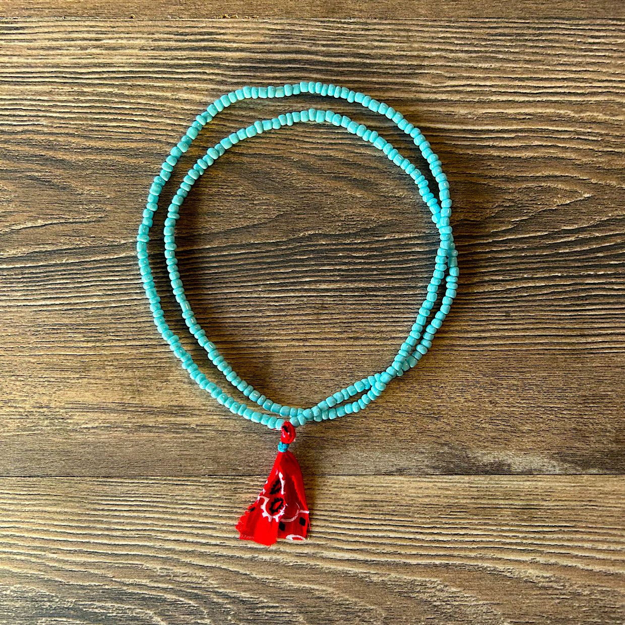 AZUL Necklace - Glass turquoise beads and hard elastic. Bandana pendant rounded hand finished. One size, about 80 cm in circumference. Beads dimension 4,2 mm.