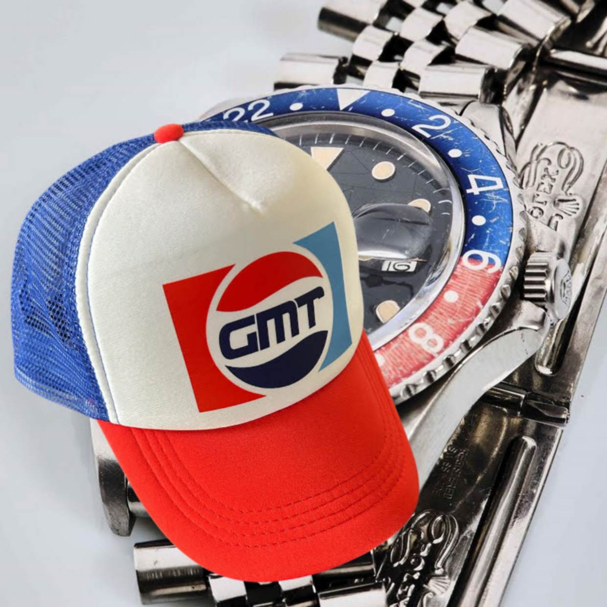 Trucker cap GMT vintage logo100% polyester 5-panel with mesh back and adjustable size with plastic closure. Logo printed in contrast on the white padded front. Curved visor as baseball hat. Hand washable with warm water. Printed one by one in Italy.
