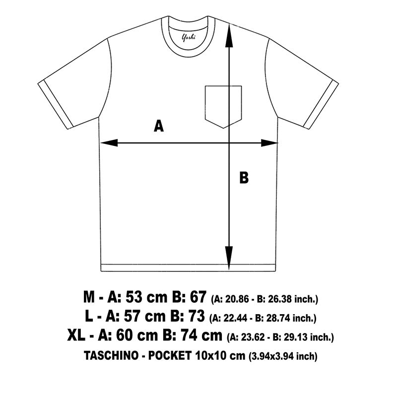IMPORTANTE: Le taglie sono M L XL ma prima di ordinare si prega cortesemente di confrontare con una propria maglietta le misure riportate in immagine in quanto il cambio taglia comporta l'addebito delle spese di reso e di nuova spedizione.