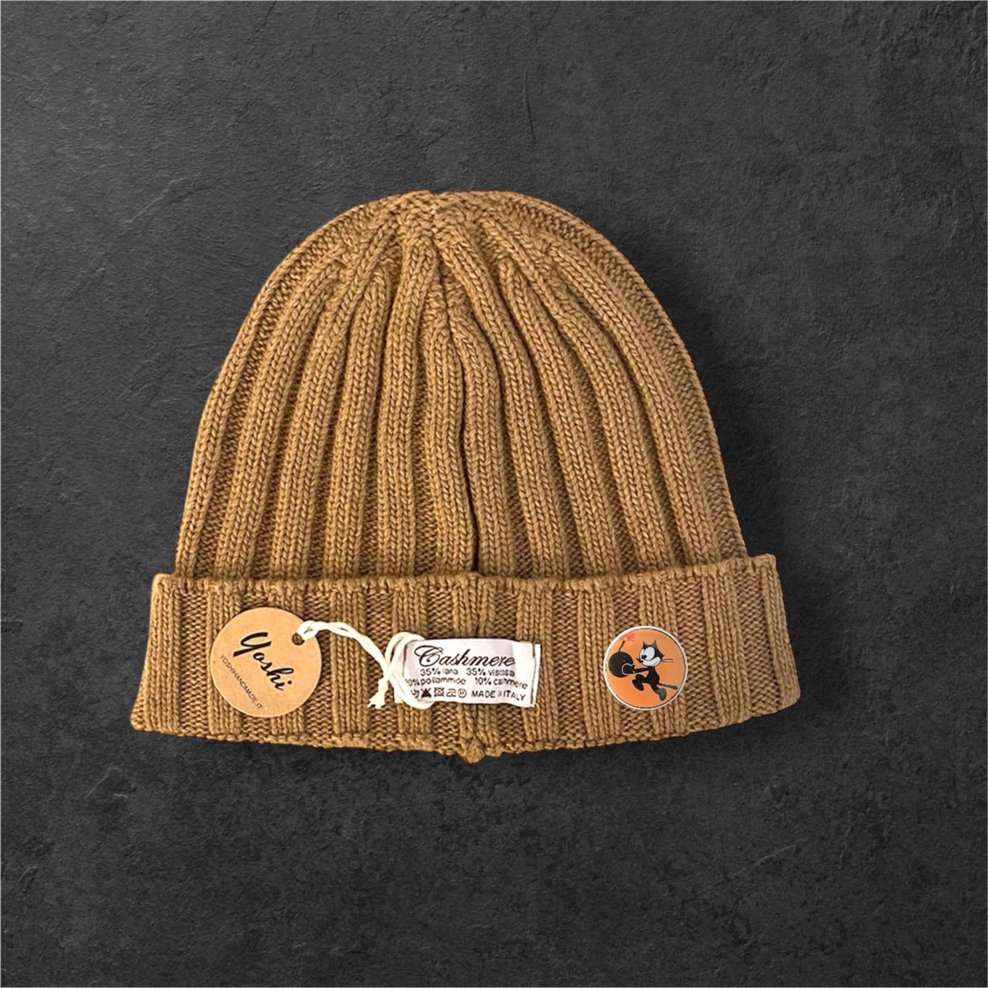 Made in Italy. Composition & care label back.  Composition: 10% cashmere, 35% wool, 35% viscose and 20% polyamide. BombCat pin included