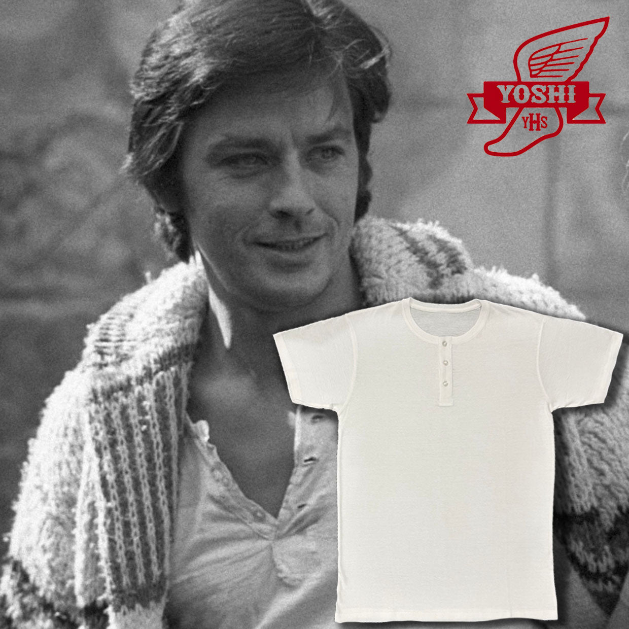 Yoshi SERAFINO 3 BUTTONS tee. 100% Cotton, medium light weight. Care instructions on label.