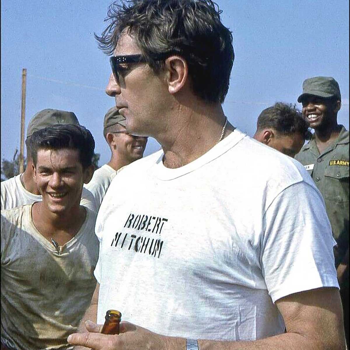 T-shirt tubolare Yoshi MITCHUM. 100% Cotone da 200 grammi bianca e stampa nera. Stampate una ad una in Italia. Maglia indossata da nel 1943 Robert Mitchum durante le riprese del film Gung Ho!. Istruzioni per la cura sull'etichetta.