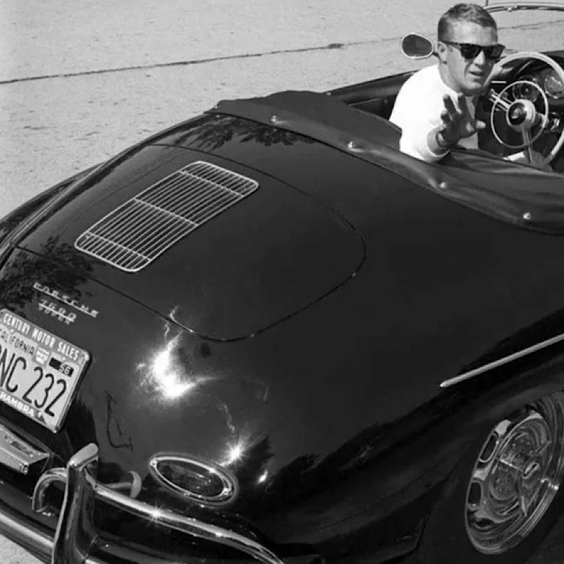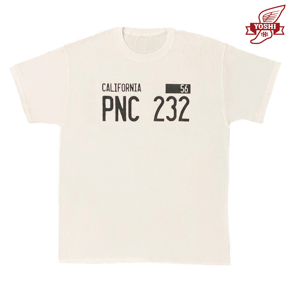 Yoshi STEVE Speedster tee. 100% Cotton white and black , 200 gr. Designed and printed one by one in Italy. The tee reproduces design and dimensions of Porsche 356 Speedster car licence plate owned by Steve McQueen in the 1956. Care instructions on label.