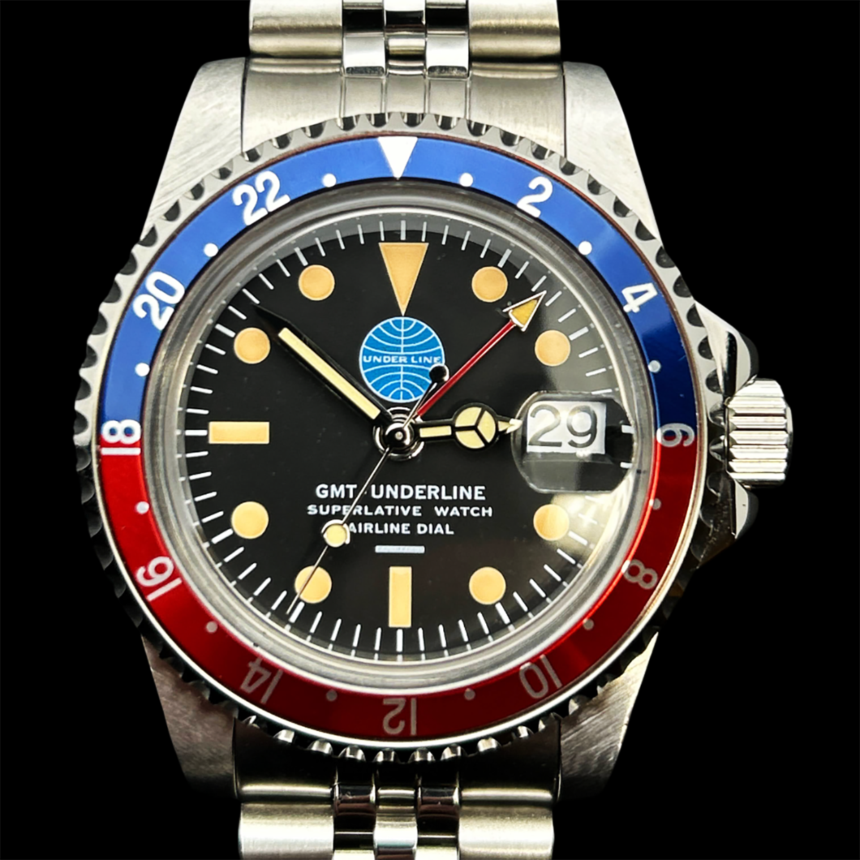 AIRLINE DIAL: Symbol of collaboration between PAN-AM airline company and Rolex from 1973. The watches with that dial are very rare!