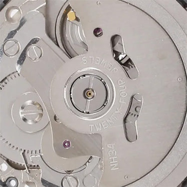 NH34 MOVMENT: Date and dual time zone Automatic TMI - Seiko - 24 Jewels movment, up to 41+ hours of power reserve BPH: 21600. Accuracy -20~+40 sec per day. Hack-second or stop-second feature allows you to set the time precisely.